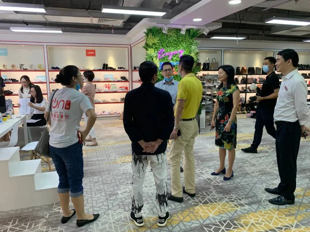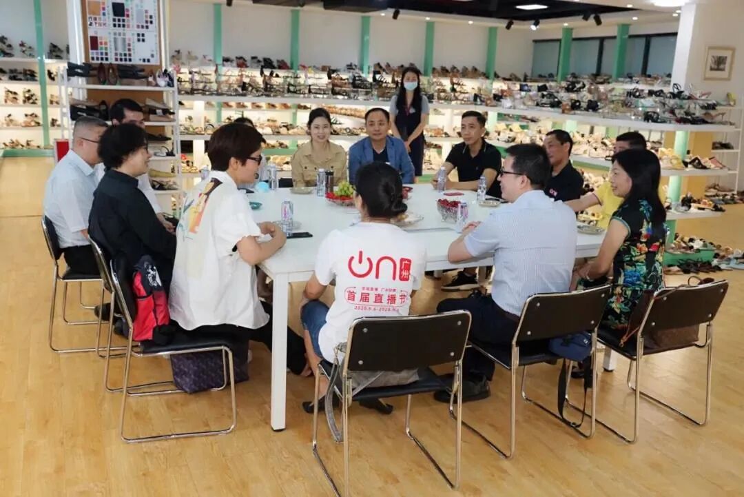 广州市商务局贸易发展处刘青副处长、朱文静科长、成静科长以及西村街道办事处经济科苏燕君科长等政府部门领导、步云天地李克贤总经理、万国童鞋黄志恒董事长以及这次参加首届直播节的企业领导们(罗尔纳莉钟应标董事长、法蒂玛麦卫红董事长、英吉丽张春英总经理、奈特鞋业陆志华董事长)及代表们等一行出席了本次交流会。期间,广州鞋业商会陈小敏会长带领与会的政府领导及企业领导们参观了罗尔纳莉直播主会场,还一同走进直播间为广州直播节助力、为罗尔纳莉LARRIE(来历)国际品牌鞋的粉丝们送福利,阵容强大,劲爆全场,圈粉多多,大卖大卖。