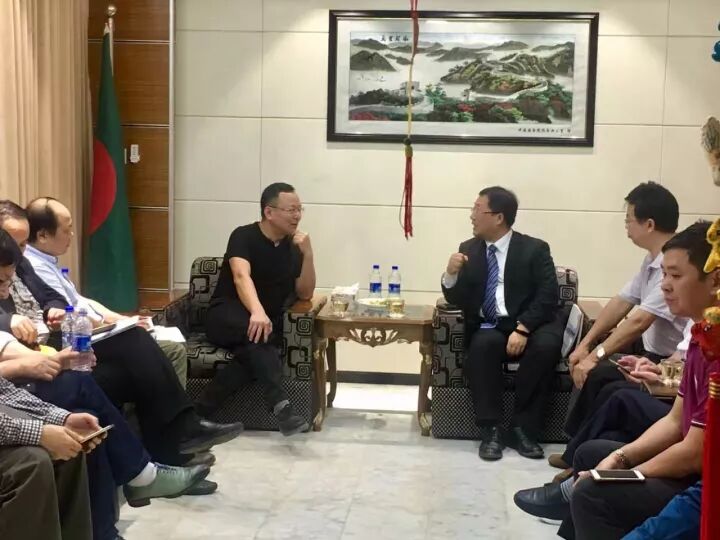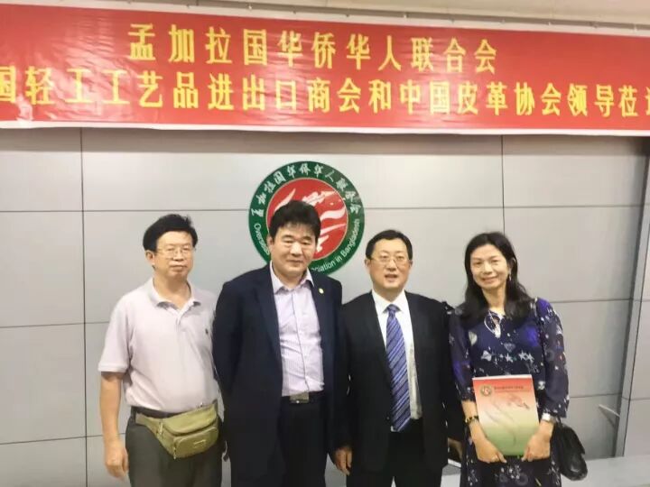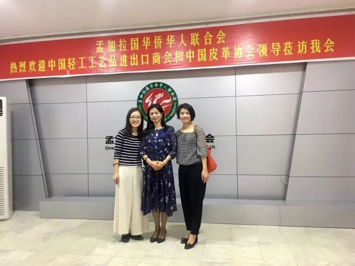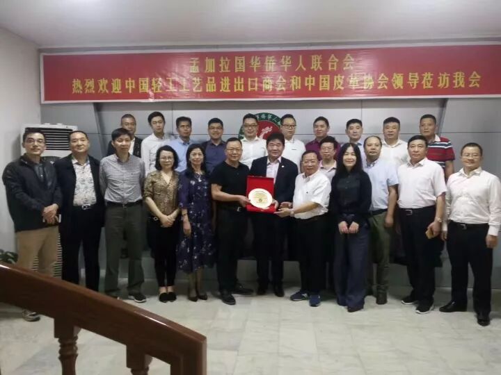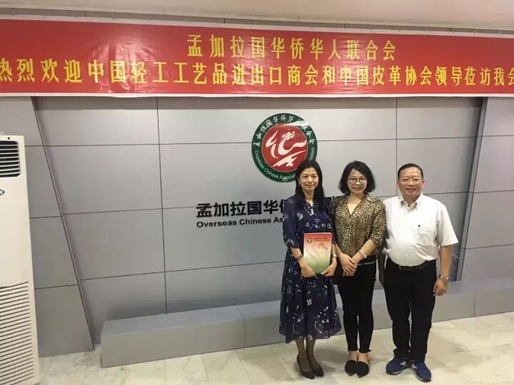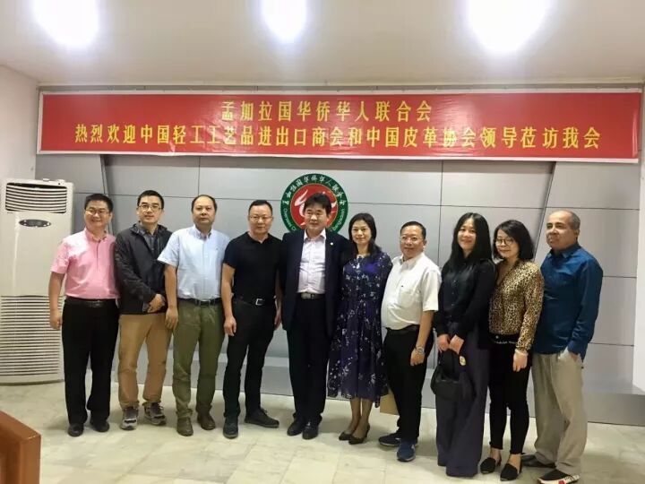 11月17日上午,广州鞋业商会会长陈小敏女士随中国轻工工艺品进出口商品张杰副会长、中国皮革协会李玉中理事长等中国考察代表团等一行前往孟加拉国华侨华人联合会进行拜访交流,与华人联合会的蔡春雷副会长进行了交谈并进一步了解了孟加拉国的投资环境和鞋业皮革等发展情况,加深了两国之间的交流与合作。