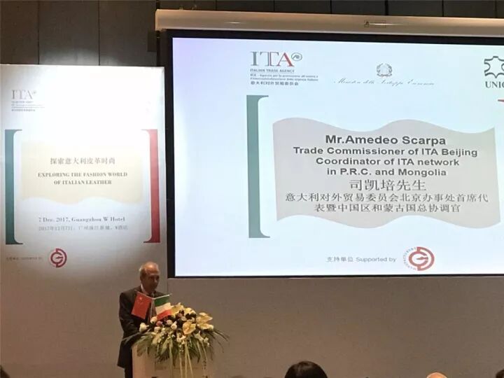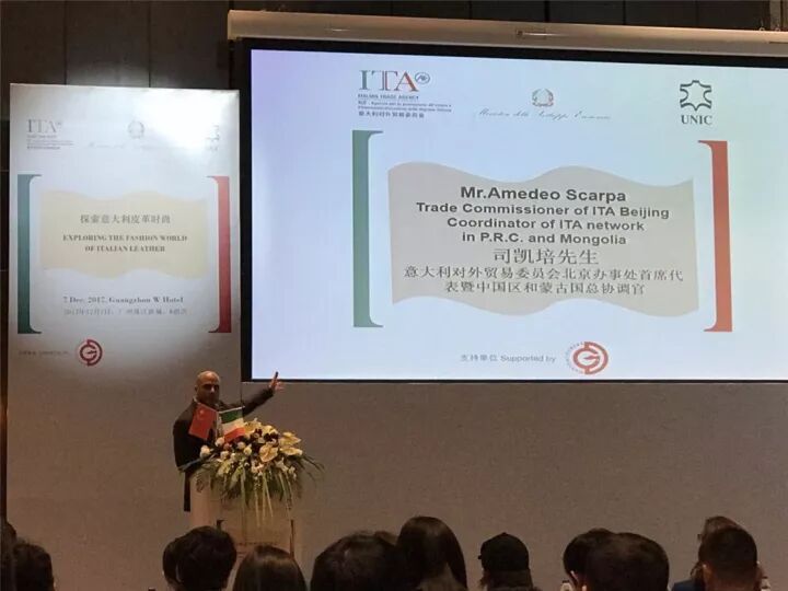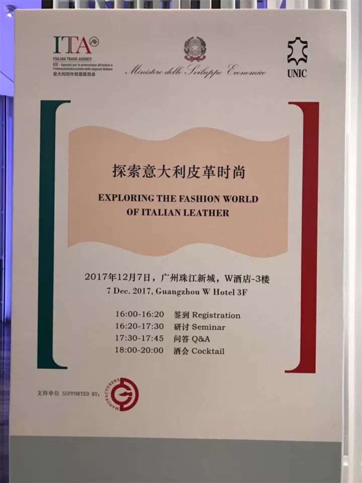 2017年12月07日意大利对外贸易委员会,在广州W酒店举办的“意大利皮革:未来几个季度的皮革流行趋势” 研讨会, 主讲嘉宾为国际时尚趋势研究专家、意大利米兰国际时装周的艺术总监、意大利全国时尚协会艺术总监Orietta Pelizzari(奥瑞塔•派蕾泽瑞)。Lineapelle是意大利规模最大的皮革原材料及配件的展览。2017年Lineapelle秋季共接待了2万多来自全球110国家的专业观众。本次研讨会将着重在未来几个季度的皮革流行趋势。