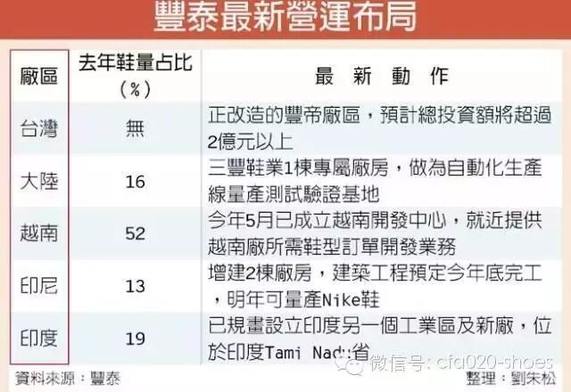 【摘要】对于印度新厂区,丰泰董事长王秋雄透露,旗下第一事业部总经理陈昭吉,已赴美国Nike总部,争取支持,而Nike当场同意丰泰去做(Go ahead),未来印度新厂可接到Nike运动鞋订单。