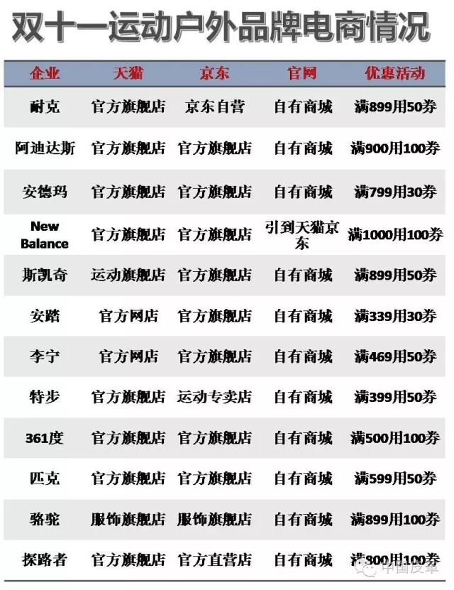 最后,小编统计了一些运动与鞋类电商的情况,优惠活动仅为优惠券部分,更多优惠请到网店咨询,祝大家双十一购物愉快。