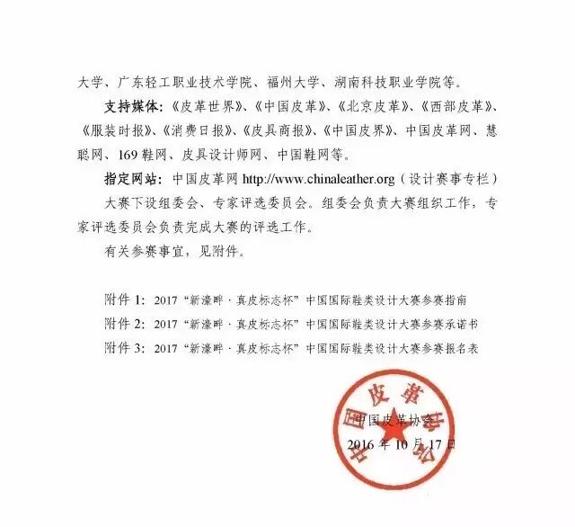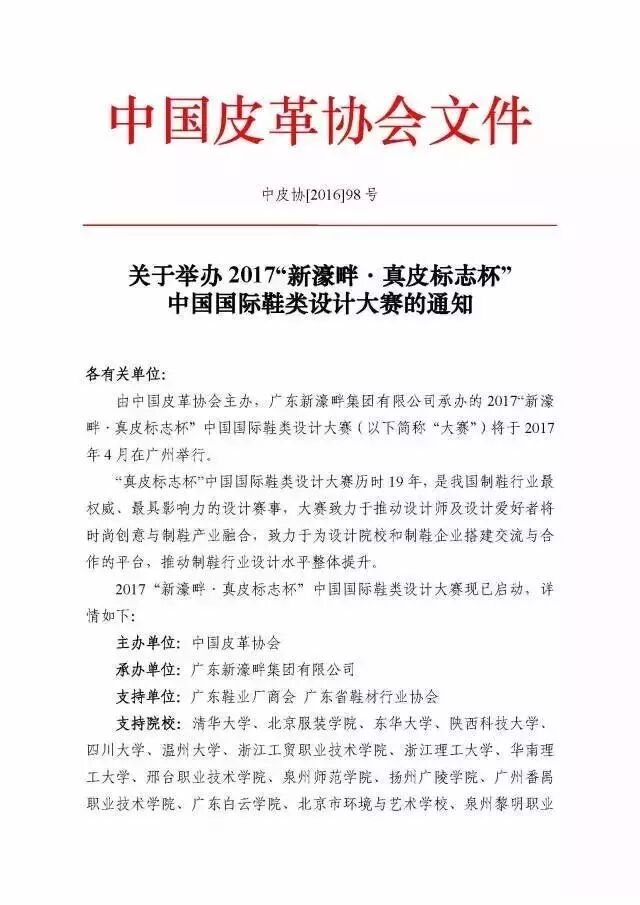 目前,新一届大赛——2017“新濠畔·真皮标志杯”中国鞋类设计大赛已全面启动。