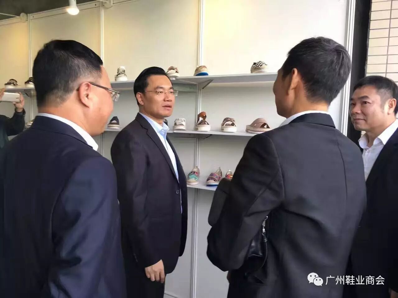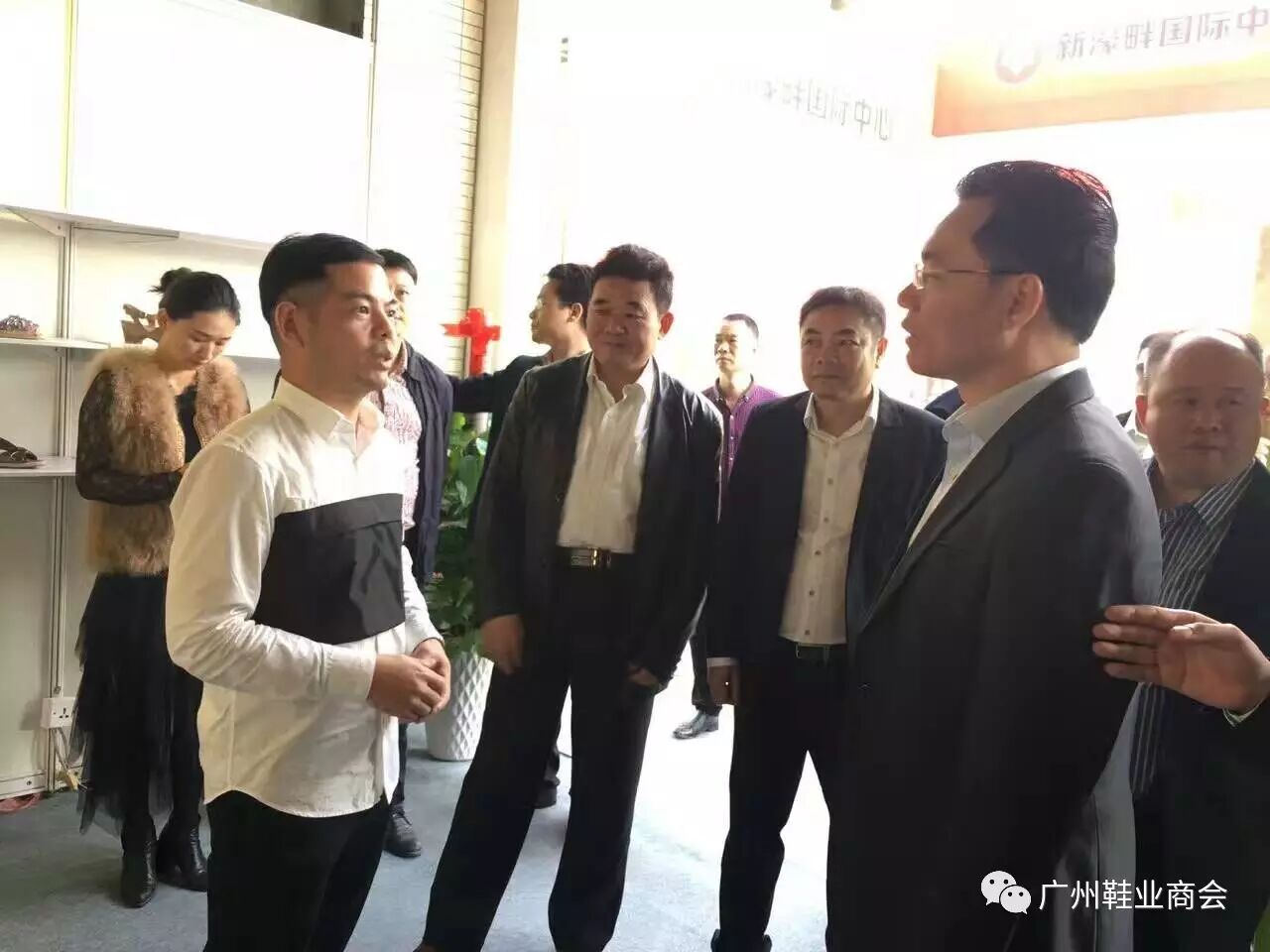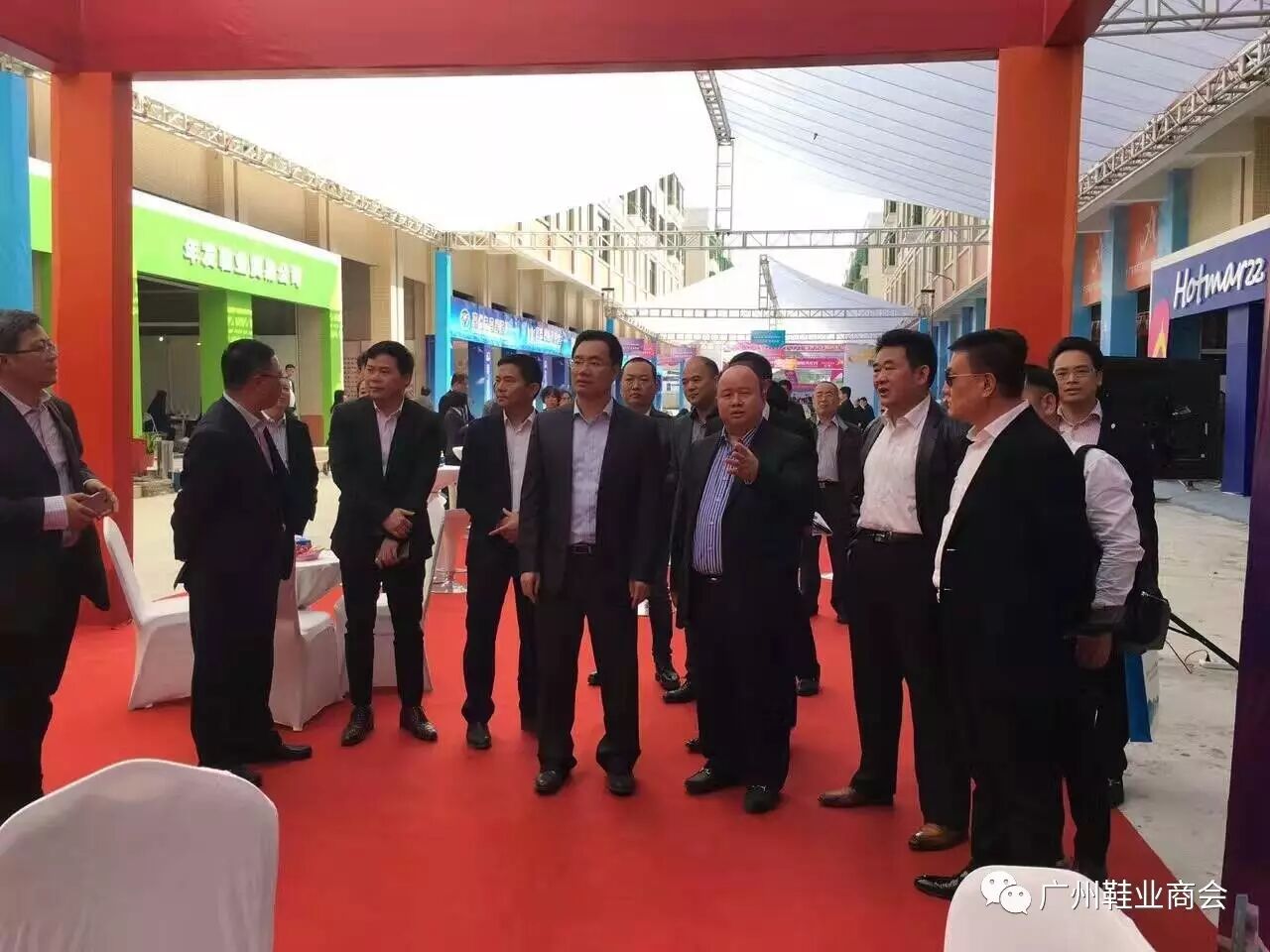 今天中国皮革协会李玉中理事长及恵东县领导等一行到广州鞋业商会副会长的展位参观指导交流!