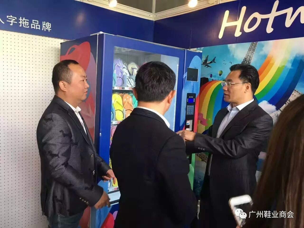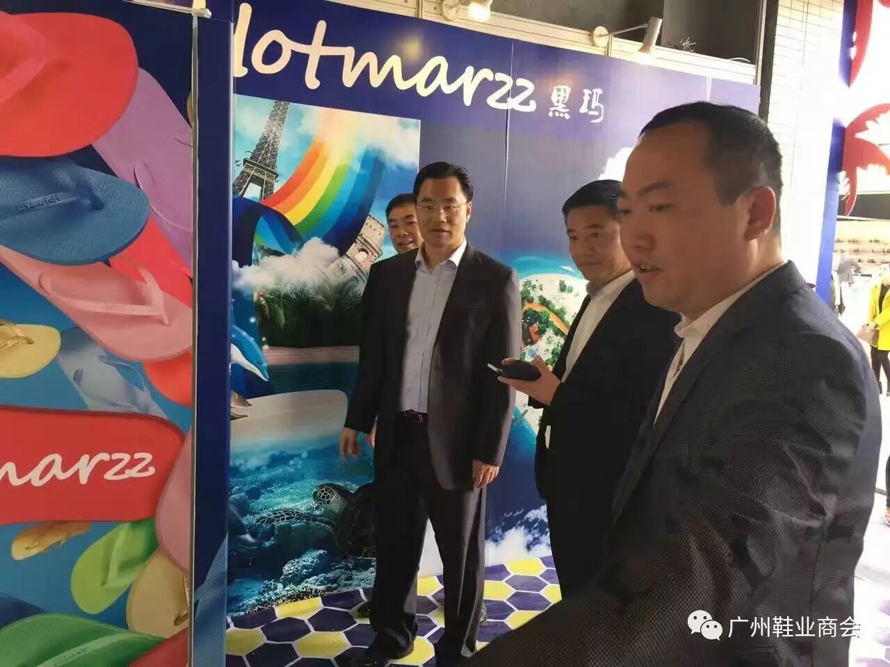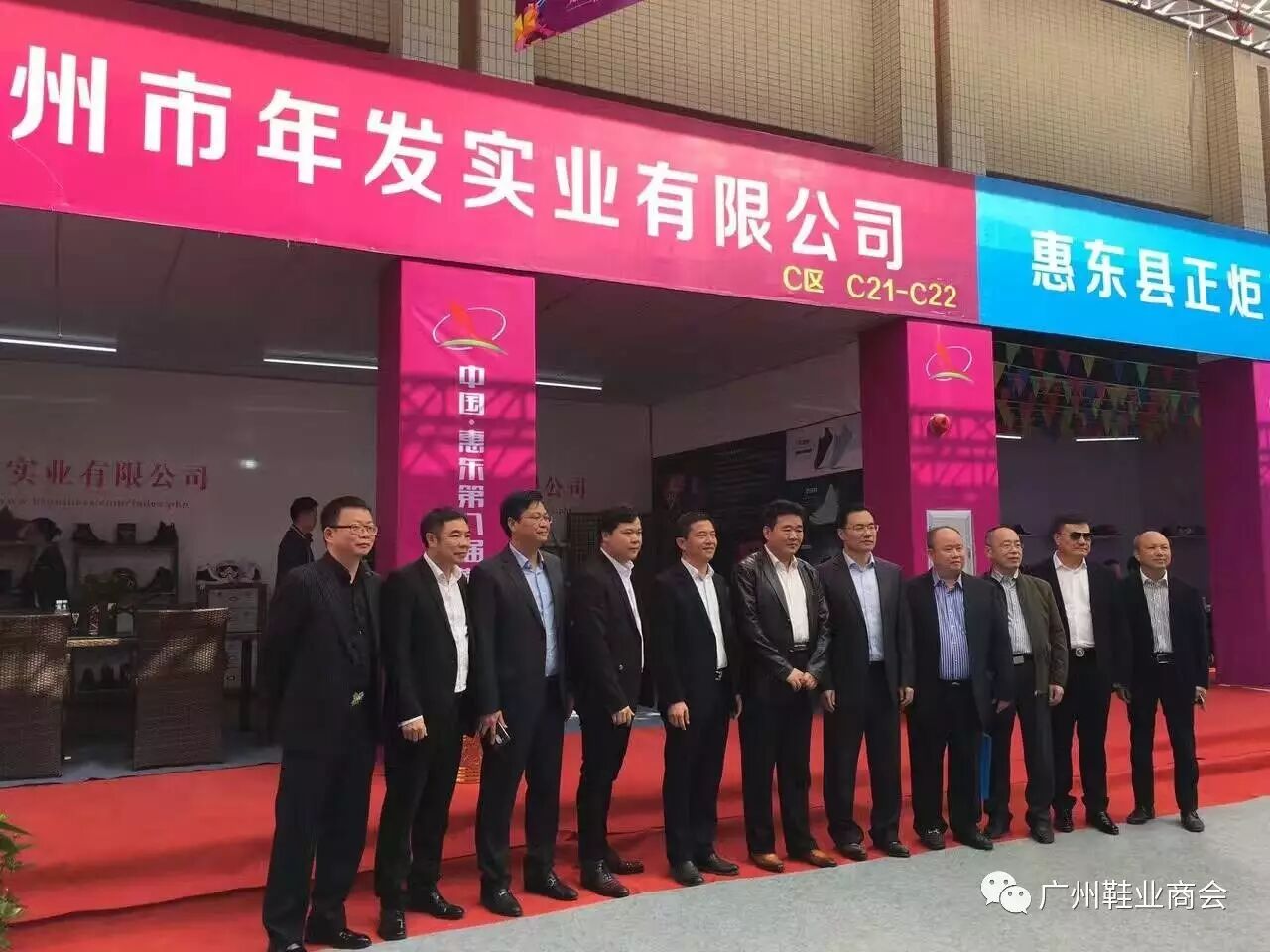 今天中国皮革协会李玉中理事长及恵东县领导等一行到广州鞋业商会副会长的展位参观指导交流!