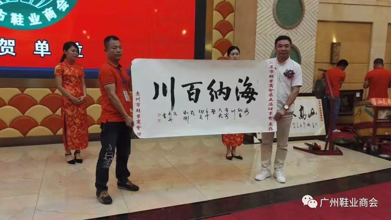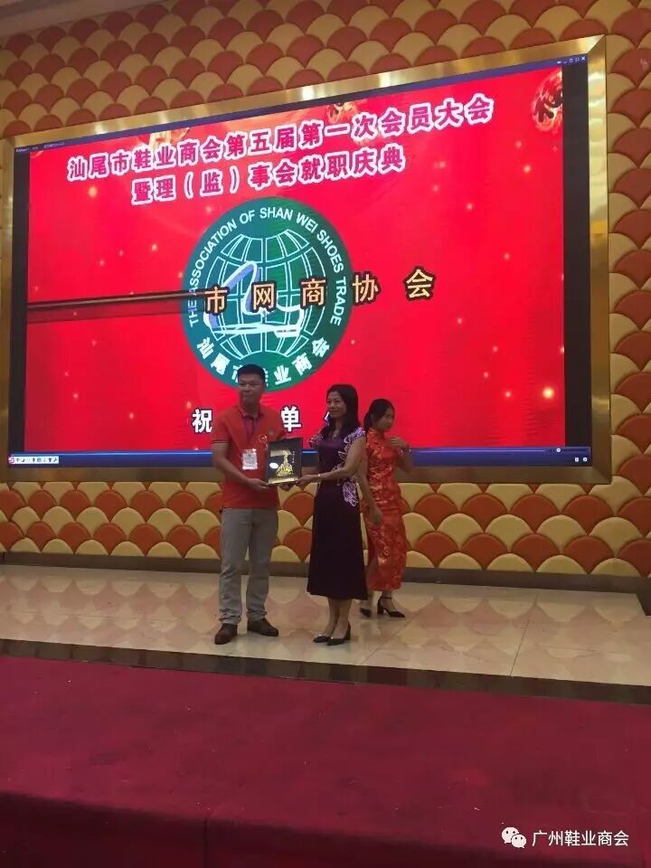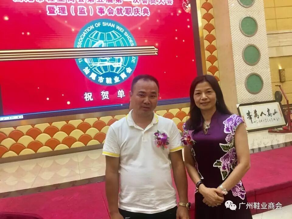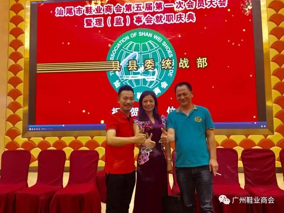 ,汕尾市鞋业商会第五届第一次会员大会暨就职庆典在汕尾市海丰县金鹏国际大酒店隆重举行,广州鞋业商会陈小敏会长等一行人到场祝贺。