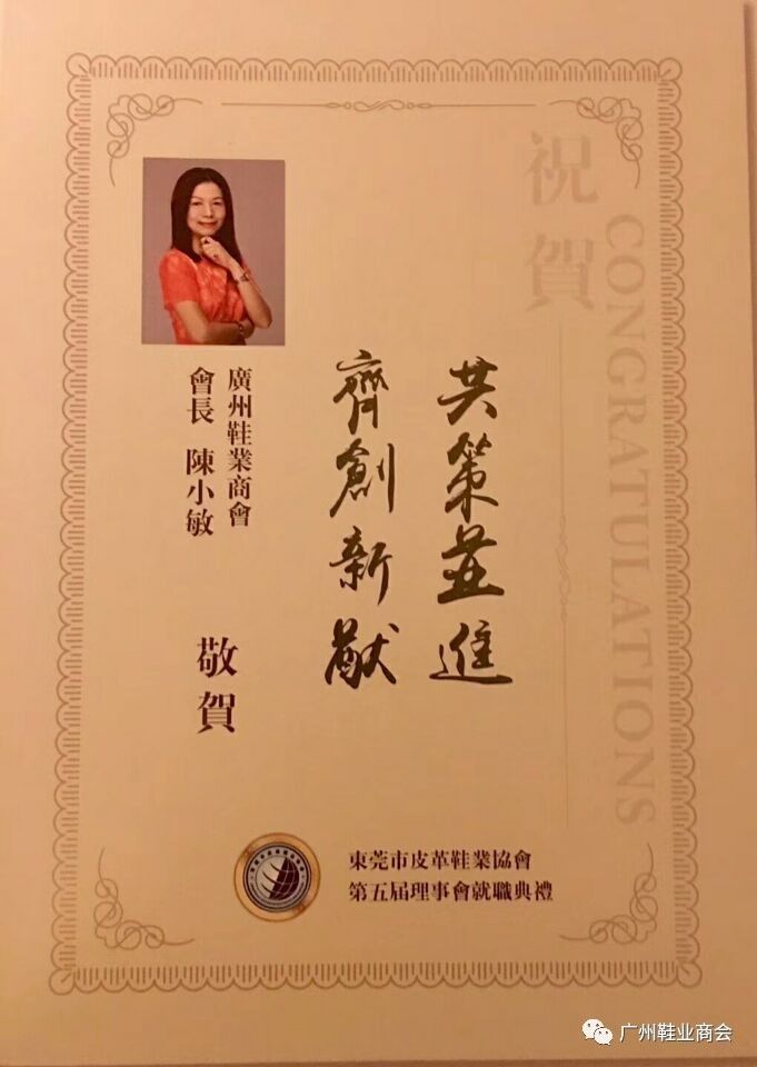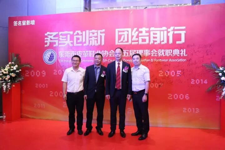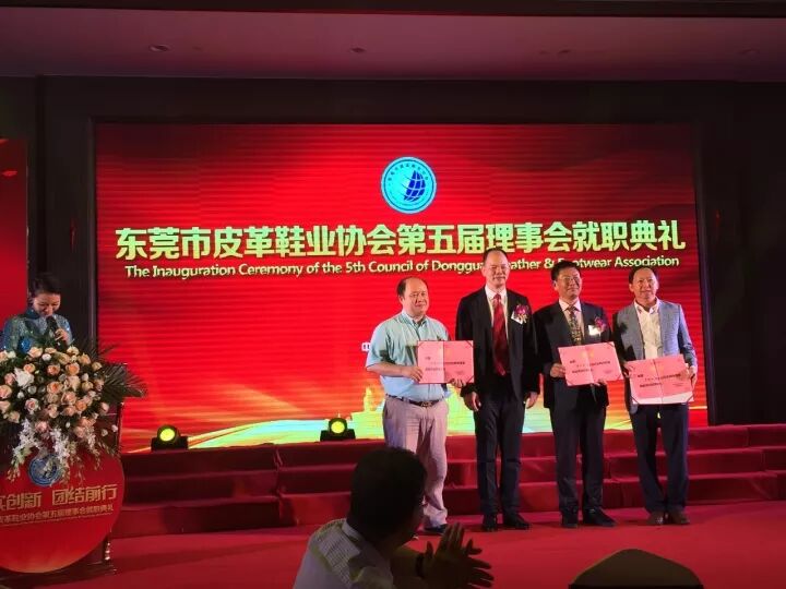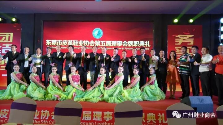 热烈祝贺东莞市皮革鞋业协会第五届理事会就职典礼隆重举行! 祝贺尹积琪先生当选为新一届东莞市皮革鞋业协会的会长!